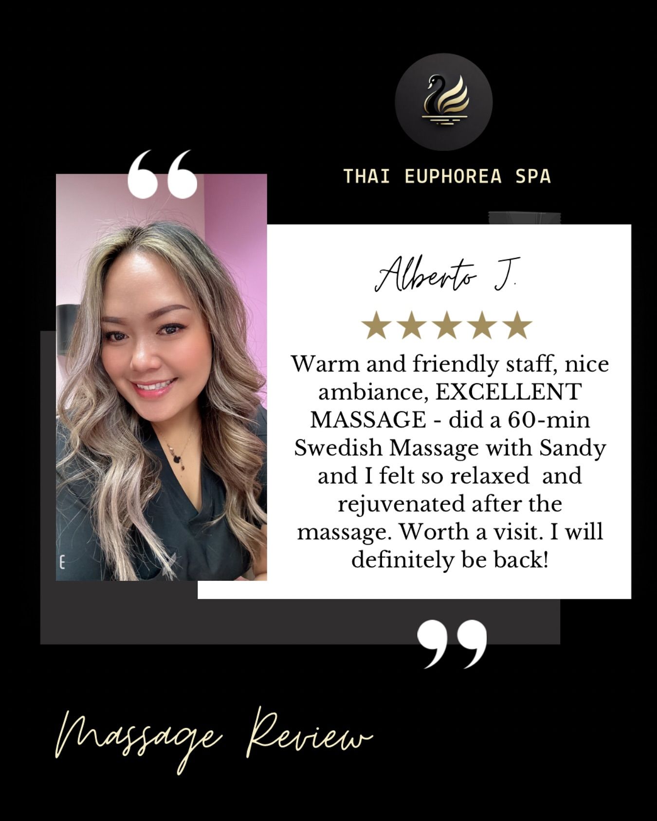 Looking for a refreshing and relaxing experience? Thai Euphorea Spa is the place to find it. Our certified therapists will work your body exactly the way you like. We care deeply about your well being and your overall experience. You'll have the most relaxing and rejuvenating experience you could ever dream of.